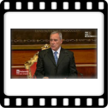 Suo figlio Luca ha guidato i presenti nell'aula e coloro che hanno potuto seguire la diretta televisiva, in un percorso a tappe nell'opera di Eduardo, spaziando tra commedie, poesie, riflessioni ed impegno civile. A dare voce alle sue "parole chiare" sono stati nomi importanti della scena italiana. La cerimonia si è aperta con un brano tratto dal poemetto Padre Cicogna, musicato da Nicola Piovani, ed è quindi proseguita con ricordi, testimonianze, omaggi.